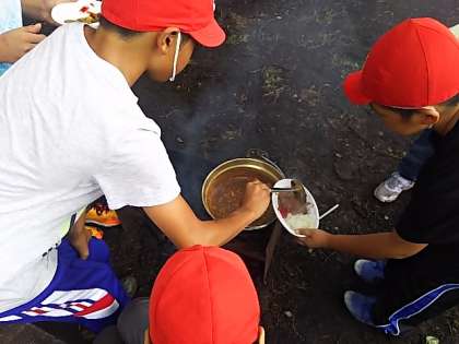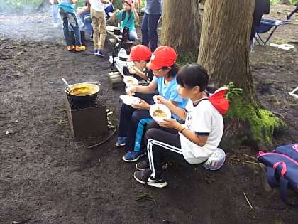 さぁ、できあがりました。皆で使ったカレーを山の中で食べる。味は格別です!