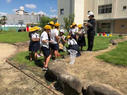 9月10日(火)、大阪市環境局から8名の方に来ていただき、4年生が「小学校での生き物さがし」の体験学習を行いました。