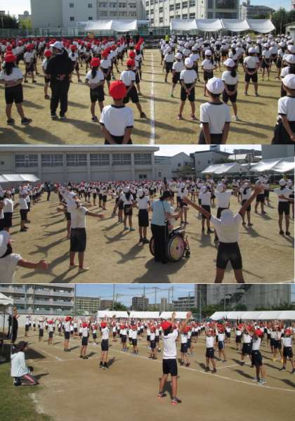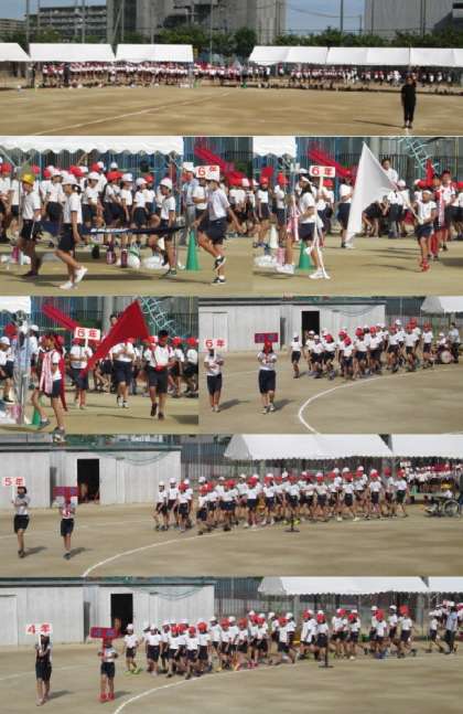 今朝は良く晴れています。明後日が本番ということで、最後の全体練習です。今日は開会式・閉会式等、全体にかかわることを通して行いました。2度目の練習とあってか、みんなとても上手です。