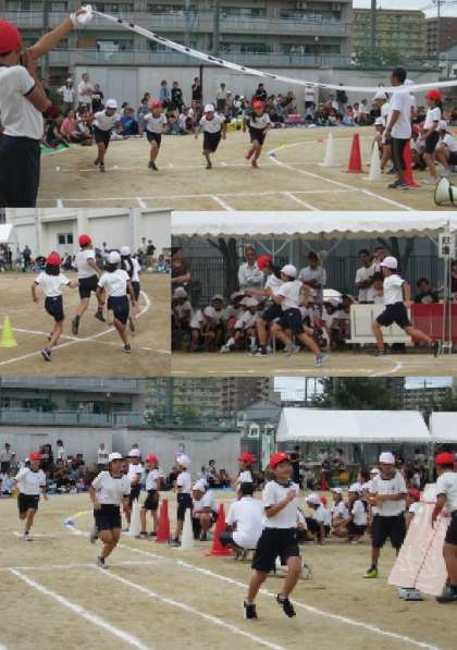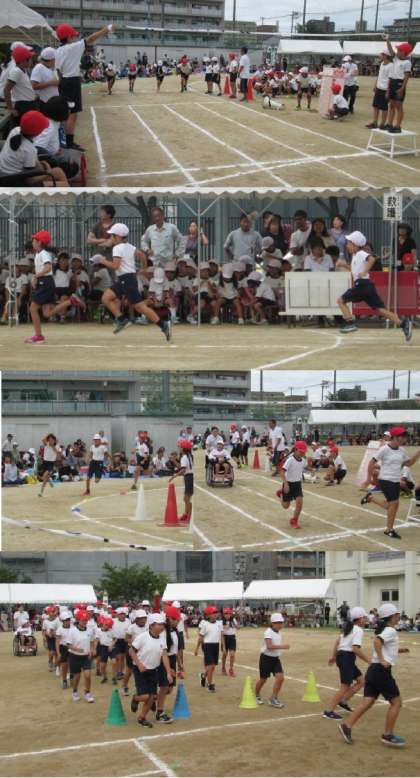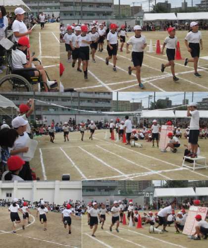 5・6年生の個人走。紅白対抗リレーとどちらかに出場します。高学年の距離は110m。大きなストライドでゴールを駆け抜ける姿は迫力満点です!