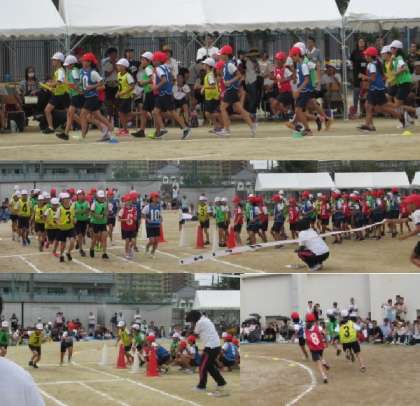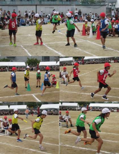 5・6年生の対抗リレー。バトンパスの難しさが加わり、見ごたえもあります。体も大きく成長した子どもたち。スピードも大したものです!