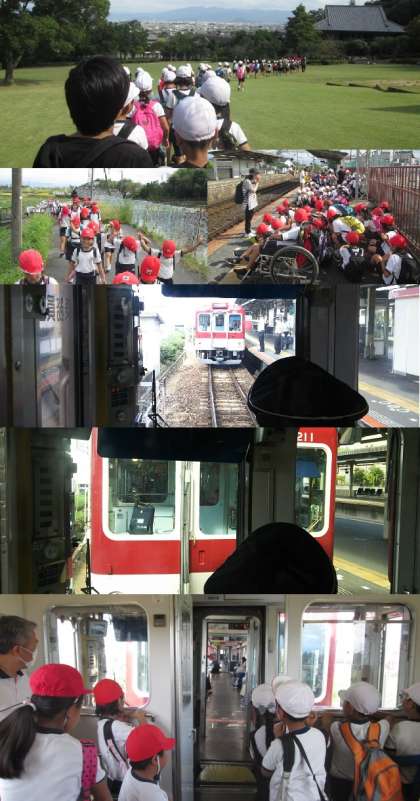 帰りの近鉄電車では、古市駅で電車を連結する場面に遭遇しました。みんな興味津々。真剣に見ていました。