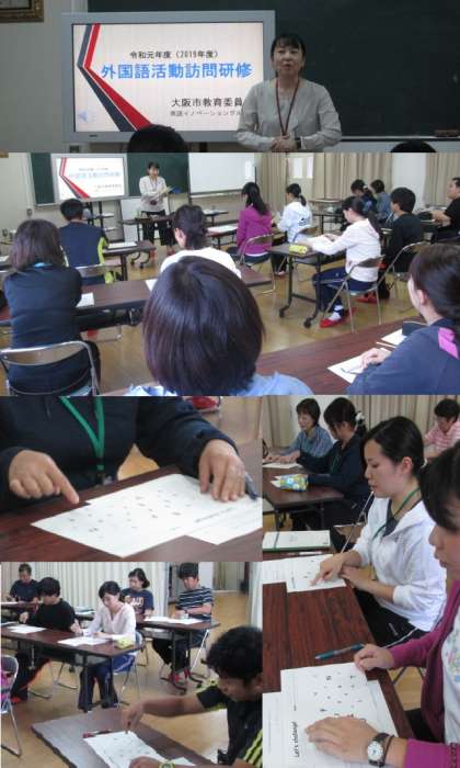 次年度より、3・4年生は外国語活動、5・6年生は外国語科が完全実施されます。瓜破東小でも以前よりEnglish timeや朝の活動と取り組んでいますが、私たちの指導力向上のため、先日、大阪市教育委員会より吾妻先生にお越しいただき、研修会を行いました。