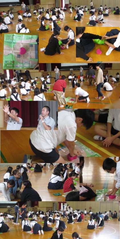 消防署の方から2011.3.11東日本大震災の話を聞かせていただき、DVD視聴後、あっぱくんライトを使って心臓マッサージの実習をしました。「1番いけないのは、何もしないこと。」教えていただいたことを忘れず、何をできるのかしっかり考えていこうと心に誓った実習でした。