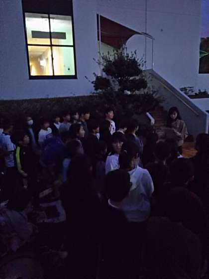 避難訓練を行いました。この後、待ちに待った夕食です!!