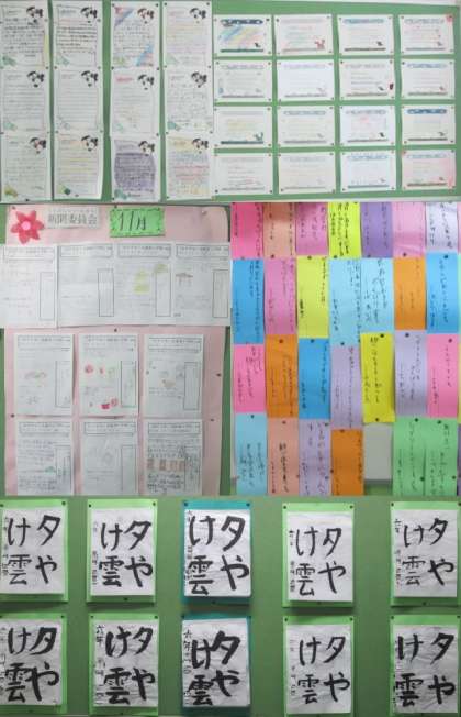 委員会活動での短冊、体験したことの感想カード、絵画や書道の作品…。本当にたくさんの個性が見られます。昨日より講堂で作品展を実施していますが、来校された際は、他の子どもたちのがんばりも、ぜひぜひ観て回って、たくさん感じてください!
