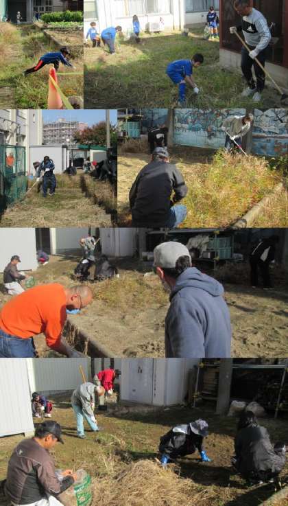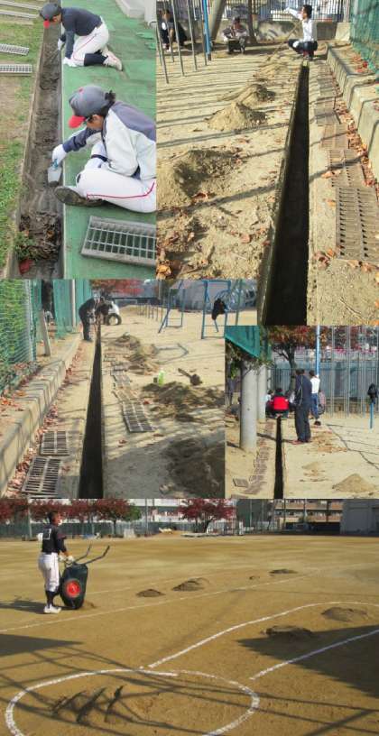 「学習園や東校舎裏」「側溝から取った土が積みあがっています」「どんどんきれいになっていきます」