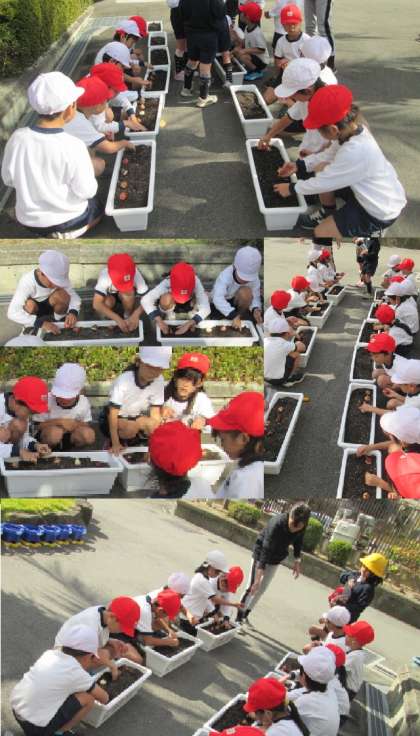 みんなで育てていきます。「どのはな みても…」咲くのが楽しみです。