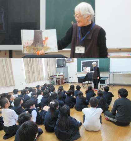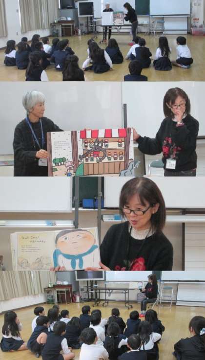 年に数回ですが、平野図書館のボランティア「おはなしたからばこ」の皆さんにも、各学級で読み聞かせをしていただいています。