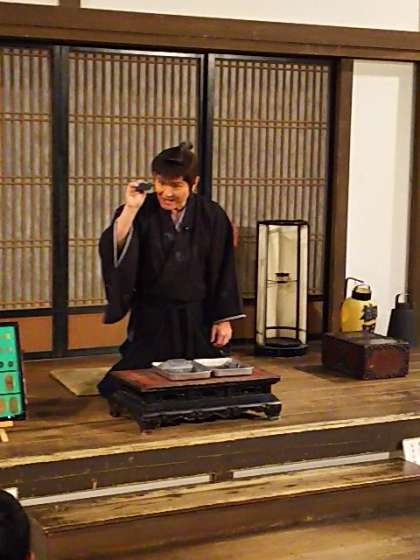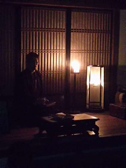 次に、室内の明かりです。火打ち石を使って灯りをつけ、実際の明るさを体感しました。
