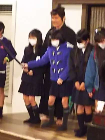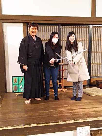 特に竹みつと金属の模造刀の重さの違いは、驚きました。先生も体験しました!
