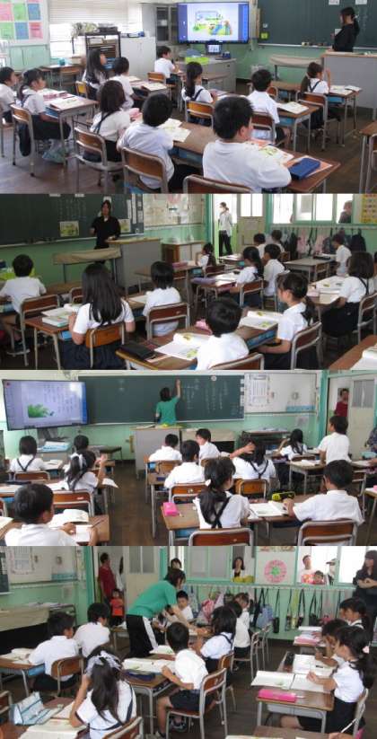本日は、2年生です。1学期の日曜参観、2学期の運動会団体競技、3学期の参観の様子を並べています。