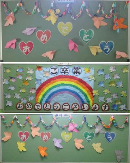 玄関や廊下、階段には、卒業を祝うための掲示物が用意されています。18日の卒業式、例年より縮小した形ですが、全教職員で準備を整え、しっかりと挙行させていただきます。
