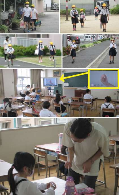 明日は、2・4・6年生です。6年生は、全員が8:20〜8:30の間に登校し、3時間の授業を実施します。家を出る前に必ず体温を測り、記録した健康観察表を持って、マスクをつけて登校しましょう!