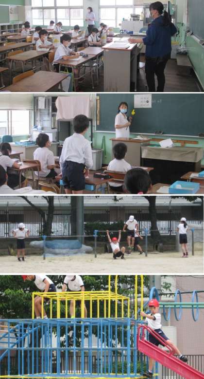 3年生は、国語科と算数科に分かれて行ったり、運動場で鉄棒や遊具を使って活動したりしました。なるべく間をあけて、楽しく取り組みました。