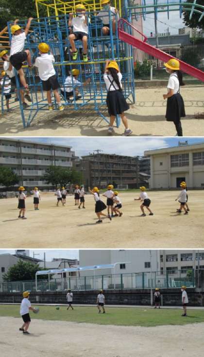 今日も、休憩時間の様子をお知らせします。明日から雨が続きそうなので、こういった姿はしばらく見られないかも…。子どもたちは元気です!