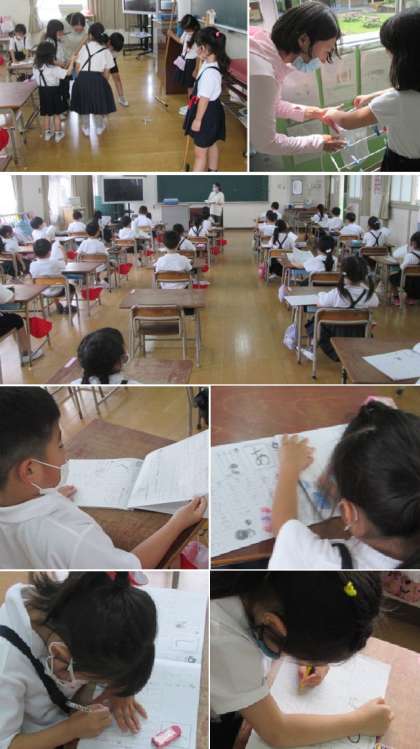 1年生にとっては、初めてのおそうじ。とても上手にできました。その後は、初めての5時間目。少し疲れた様子も見られましたが、しっかりと学習することができました。