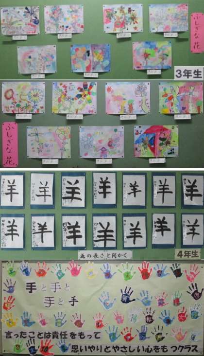 学校が再開して1か月が経ちました。学習活動が活発になると同時に、作品等が増えてきています。まずは、階段や玄関の掲示物を紹介します。14日からの参観Weekでご来校された際、教室や廊下にもあるので、お子さんのものはもちろん、子どもたちのがんばりを見てください。