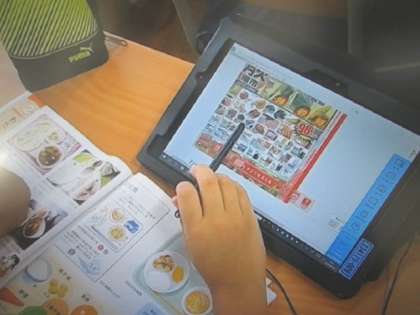 そこで、タブレットを使って、インタ—ネット上のデジタルチラシを用いて産地調べを行いました。