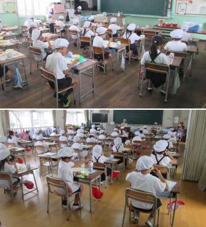 今は、普段から静かに給食を食べているので、いつもと変わらない風景ですが、どの子も真剣に聞き入っているようでした。