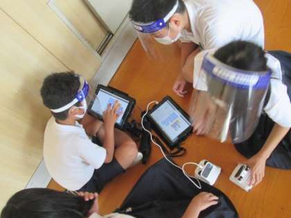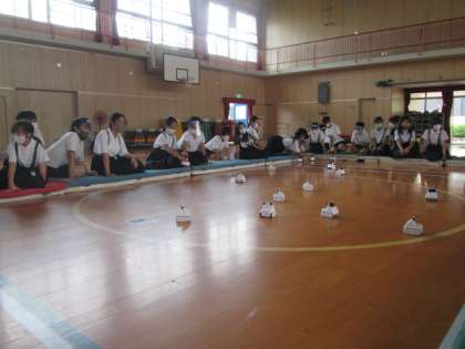 5年生は、『ぶつからない車』のプログラミングを、学習しました。