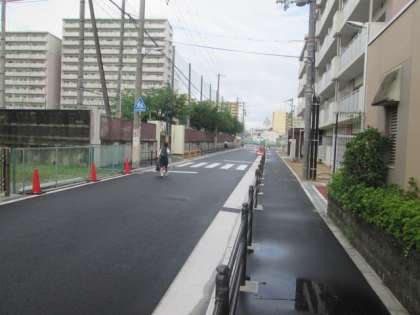 昨日お知らせした、学校北側の道路の朝の様子です。車止めが外されたばかりなので自動車の通行は見られませんが、今後、交通量が増えていくことが予想されます。