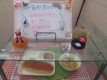 今日のメニューは「チキンレバーカツ、スープ、パン、牛乳」です。臨時休業での授業の遅れを取り戻すために、始業式の日から給食もスタート!