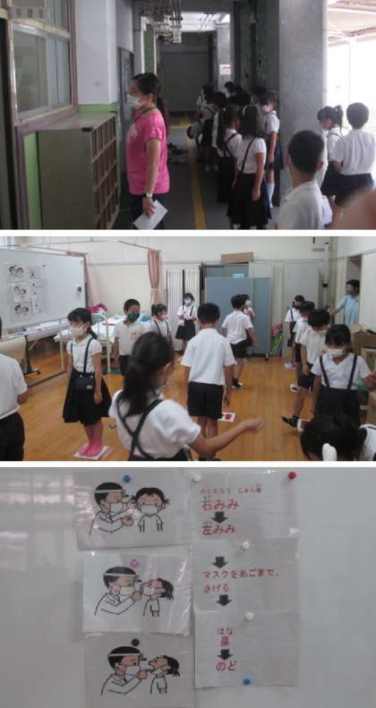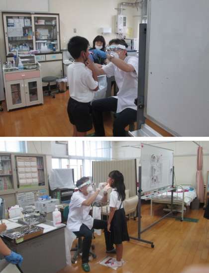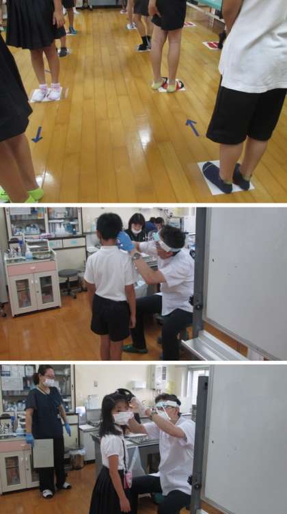 新型コロナウイルス感染症の拡大に伴い、健診が延期されていたのですが、ようやく実施することができました。ただ、例年と比べ、感染防止対策のため、一人ひとりに要する時間が長くなってしまい、校医先生にも負担をかけることになってしまいました。健診の結果を受けて、治療等を勧められた場合、早めに専門医に診てもらうようにしましょう。