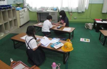昨日の1年生の様子です。今回はいつもより少なめでしたが、来ている人は慣れたもの。どんどん取り組んでいました。