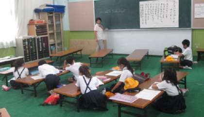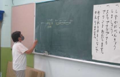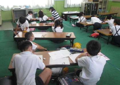 2年生の様子です。それぞれが課題をしていたのですが、途中でストップして、全員で時刻と時間についての復習をしました。こんな学習の形態も、時にはあります。