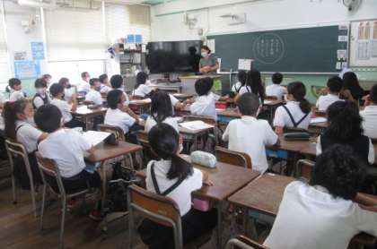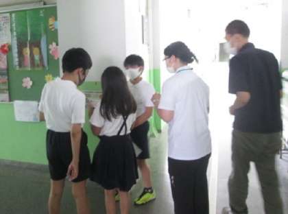 教室では、「□□先生や。」「◇◇先生と違うか?」思い思いに発言しています。「正解は、☆☆先生です!」「やった〜!」「ええ〜っ?」反応は様々でした。