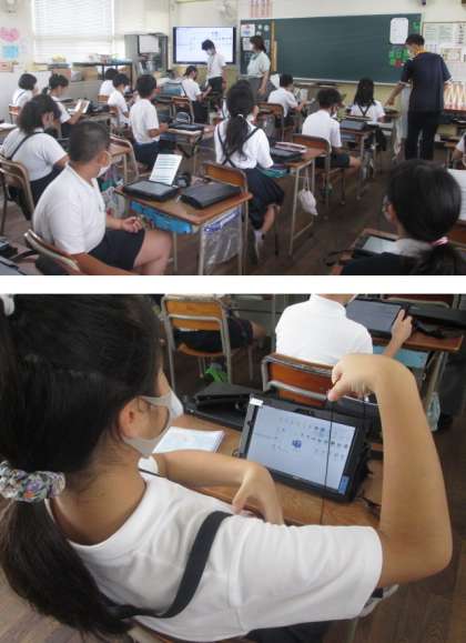 先週6年生は、Teamsの接続や活用について学習しました。一人ひとりがタブレットを用いて、Teamsにサインイン。初めはなかなか上手くいきませんでしたが、少しずつ慣れてきて設定したり入力したりしました。