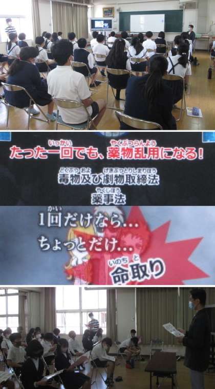 「違法薬物は、止められなくなるかもでなく、止められないもの。薬物に△はない。絶対にやってはいけない。たった1回でも乱用で犯罪です。」先生のお話に、熱がこもっていました。