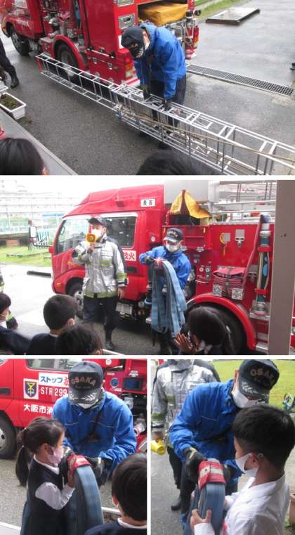 消防車には、仕掛けや装備がいっぱい!できることがたくさんあります。間近で見る消防車や様々な装備に、興味津々です。質問にも答えてもらいました!