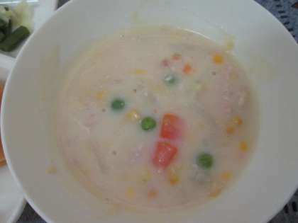 コーンクリームシチューのルーは米粉でできており、小麦アレルギーの人も食せます。