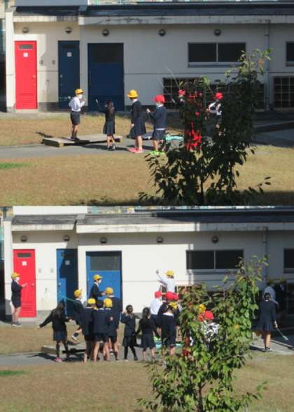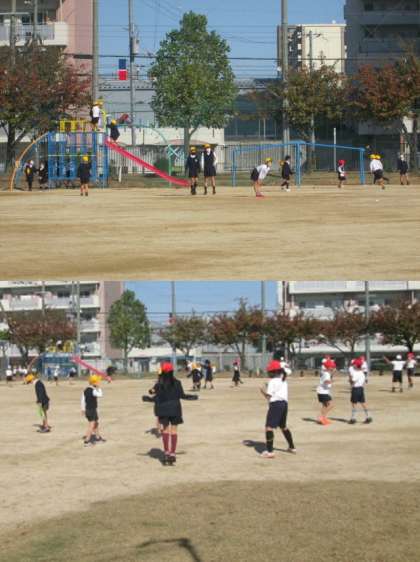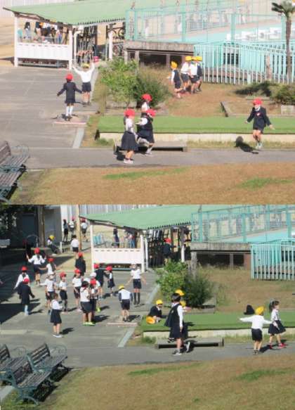 ほぼ同じようなところから撮影したのですが、その違いは歴然としています。特に2・3時限目の間は多くの子どもたちが出てきて、様々な場所でなわとびに取り組み始めます。