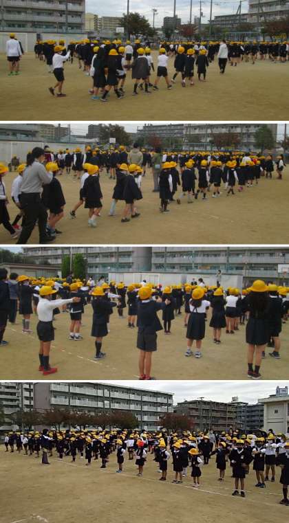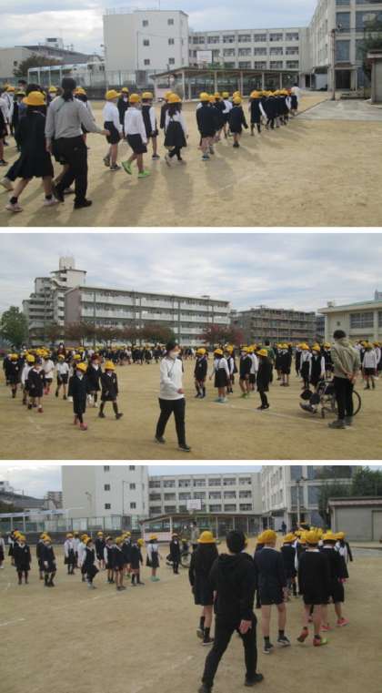 朝会後に教室へ入るのも初めて。吉田孝先生の指示で、各学年とも上手に退場しました。