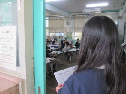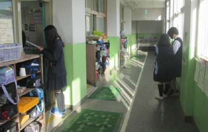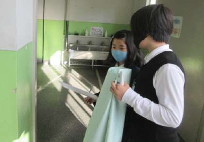 朝、保健委員会の皆さんが、自分の担当の学級に行き、清潔調べをしています。新型コロナのこともあり、教室に入らずに活動してくれています。