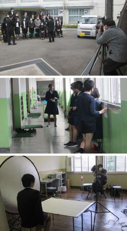 昨日、卒業アルバム用の撮影が行われました。朝は教職員の集合写真を、その後、個人、グループ、学級、委員会活動の様子などを撮影してもらいました。行事ごとにも撮影してもらっていますので、どんなアルバムになるのか、今から楽しみですね!