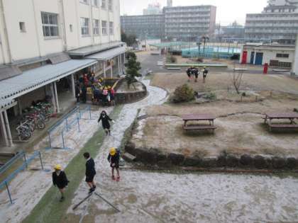 とても寒いのですが、一部の子どもたちは嬉しそうです。