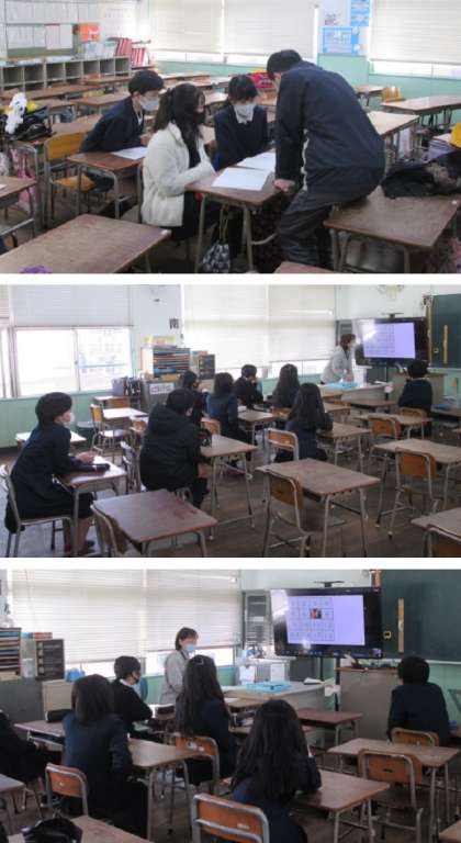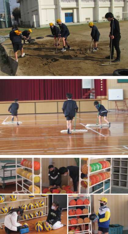 上から3枚ずつ、集会委員会、スポーツ委員会、給食委員会の様子です。