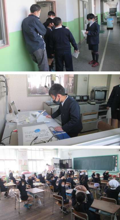今週は、本校独自で設けた給食週間。月曜日、給食委員の代表がそのことを周知。水曜日には、給食クイズをしました。「水菜は…」「中学校の給食は…」食材や給食の歴史に関する内容で、教室では答えを体で表現していました。給食委員さん、ありがとう!