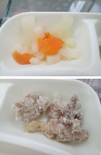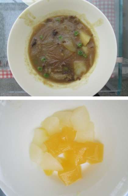 メニューは「フライドチキン、カレーシチュー(近江牛)、お祝いピクルス、フルーツゼリー、パン、牛乳」です。