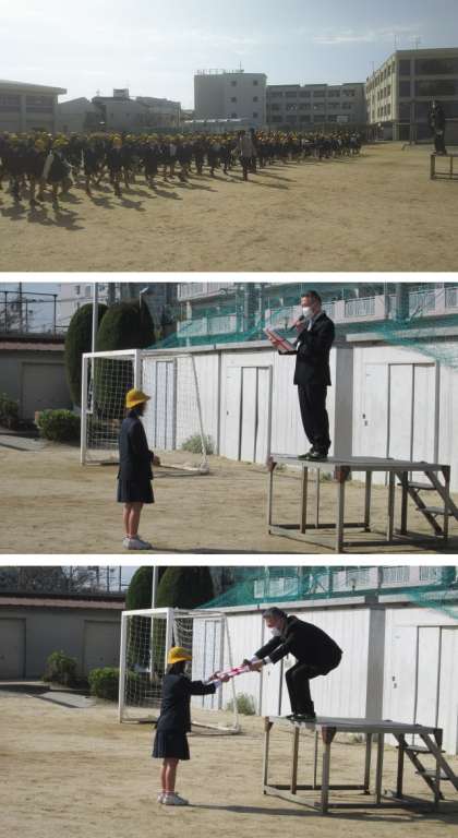 校歌を歌った後、校長先生から代表の人に「修了証」が渡されました。