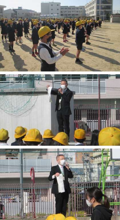 朝から良い天気、久々に運動場でみんなが集合しました。