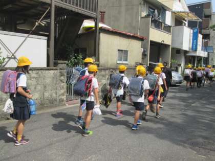昨年度から、新型コロナウイルス感染症対策で密にならないよう、集団登校を行っていません。