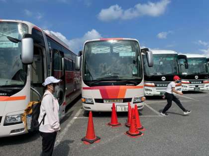 5・6年生合わせて83名の子どもたち、8名の教職員、1名のカメラマンさんを乗せたバスは、休憩所「針テラス」に到着しました。
