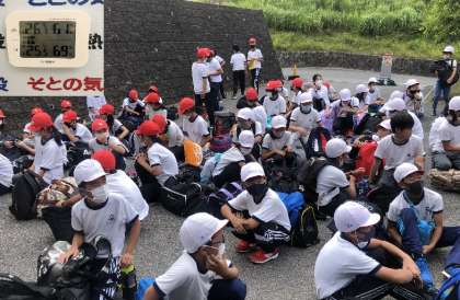 子どもたちは、バスの乗車と慣れない山道を歩いて、少し疲れた様子です。