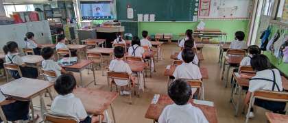 教室では担任の先生が子どもたちを出迎えました。そして、夏休みの思い出を聴きながら、子どもたちの健康観察をしたり夏休みの課題を集めたりしました。久しぶりの再会を喜ぶ子どもたちの姿もありました。