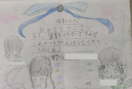 今週のクイズは、2枚目の画像のように、1番正解が多かった列に「おめでとうカード」を作りました。
